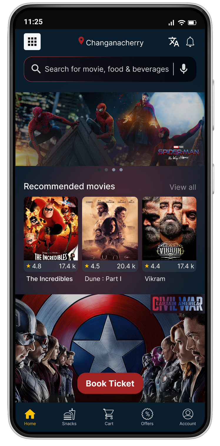 CineBite is a simple app to help people order food and beverages from the comfort of their seats during a movie, without having to wait in the long queue